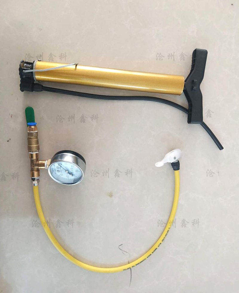 检查方法是将5号注射针与压力表相连接,用打气筒进