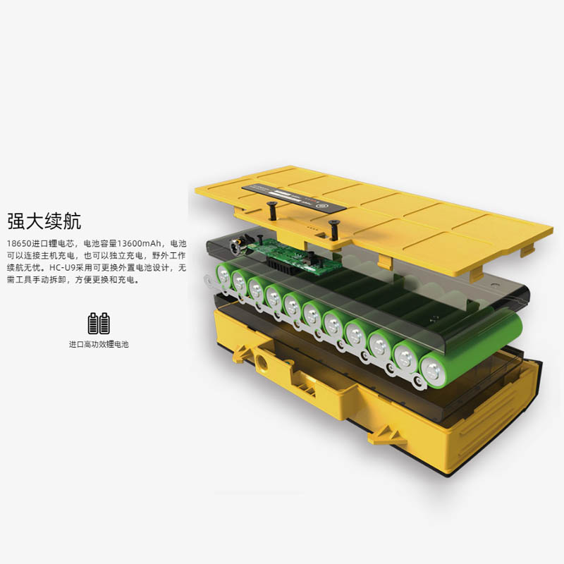 ¢ 配备可独立充电锂电池,徒手拆卸灵活更换,方便长时间检测。